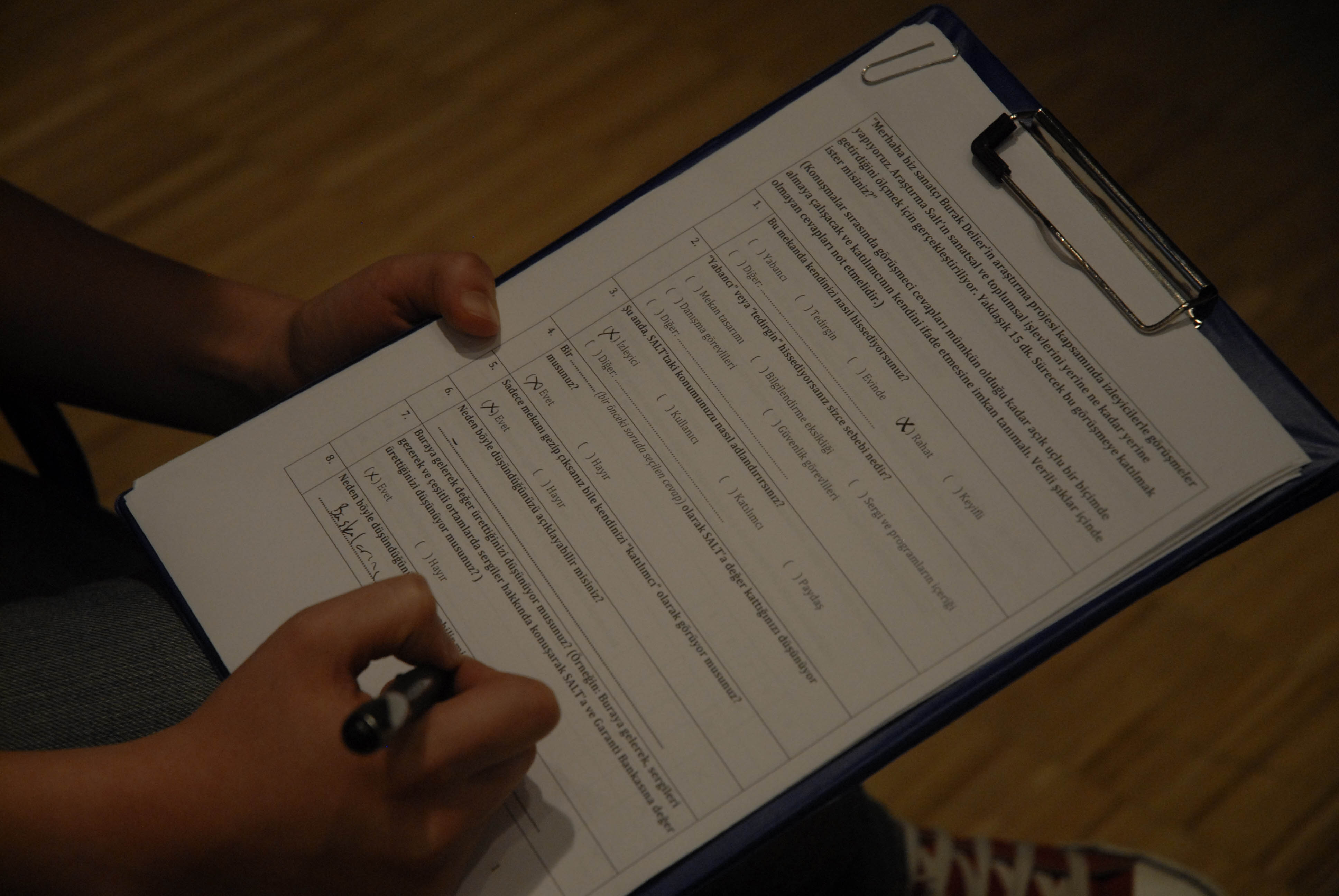 Art Facts is an artist project measuring the institutional performance of SALT. The research project is conducted by artist Burak Delier within the framework of “One day, everything will be free...” Appropriating research techniques developed according to a contemporary managerial logic, the project begins with an institutional survey realized through on-site interviews. The intention is to take this specific place and open it up, in another way, to its audiences for debate. Pollsters will be gathering input and distributing surveys to participants in the galleries of SALT Beyoğlu during May.