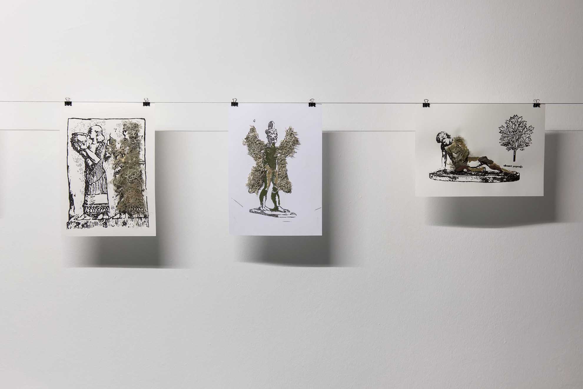 In the exhibition, nature’s oldest and primitve organisms meets with the fundaments of the human knowledge and communication; the letters. Is huge stone statues are the most durable human production? What can stand against the destructive and corrosive power of nature? Can words be stronger than stone? While the lichen and moss covered statues turn to sand and soil, the words turn into letters and letters turn into strange shapes. Lost civilizations and lost words; erasure, erosion, diminution, disruption, crumbling, extinction becomes a holistic installation referring to temporary civilizations that can hold onto life.