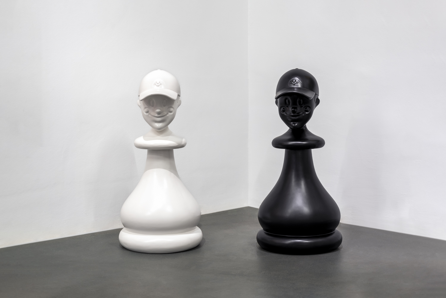 "Pawn" (2023) is a Çebi-language rendition of the chess game, which dates back to before times. Although pawns appear to be the most worthless component on the game board at first glance, in the hands of someone who knows, they can become part of the most valuable games. Çebi's pawns have new faces that differ from conventional pawns; as an unknown variable, these pawns have the possibility to checkmate both sides of the game.