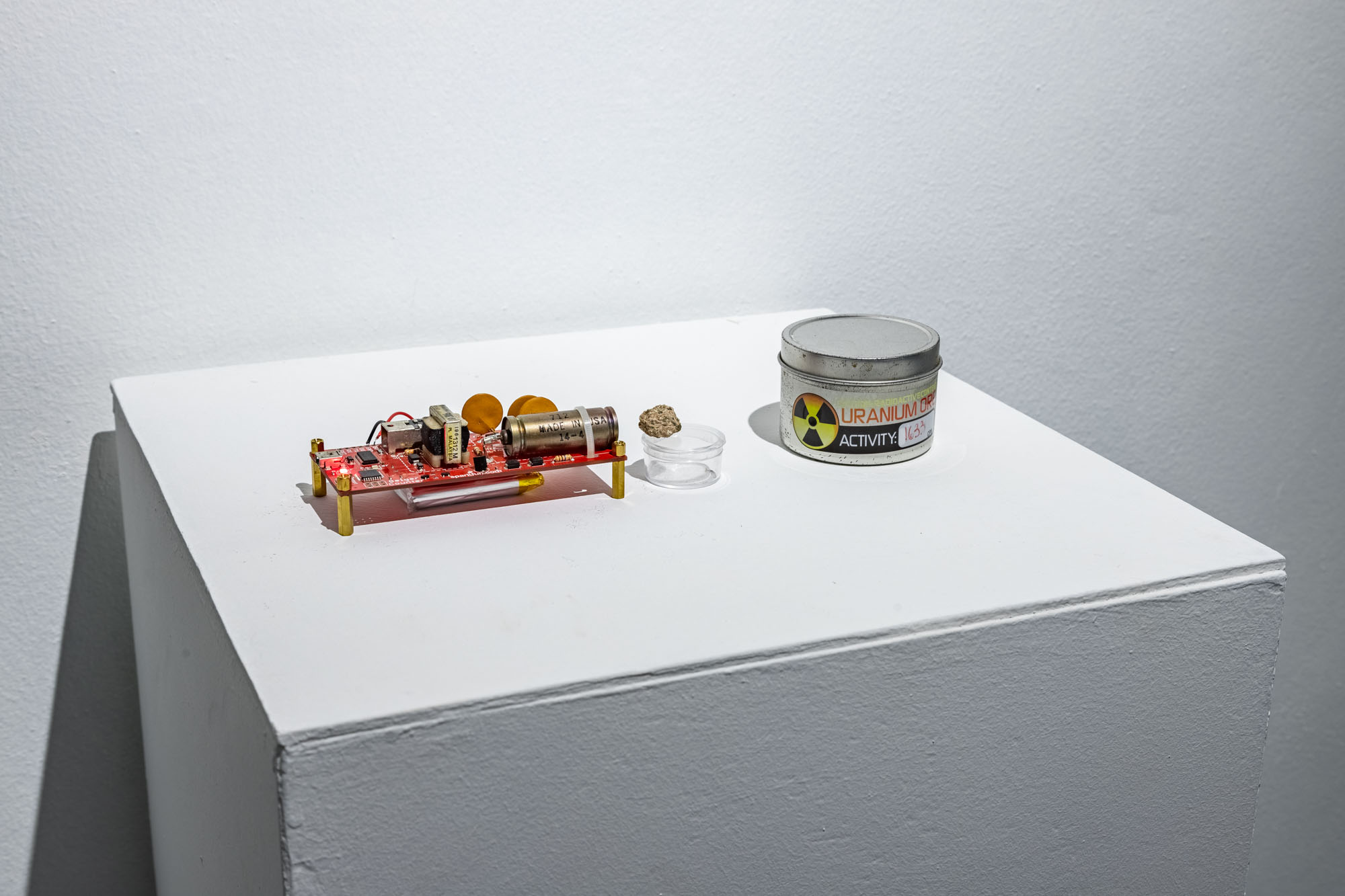 The select group of works at the co-Pilot are a collection of signals from the deep time and radioactive spaces and Akin’s body of work as they pertain to his long term research on nuclear mobility.