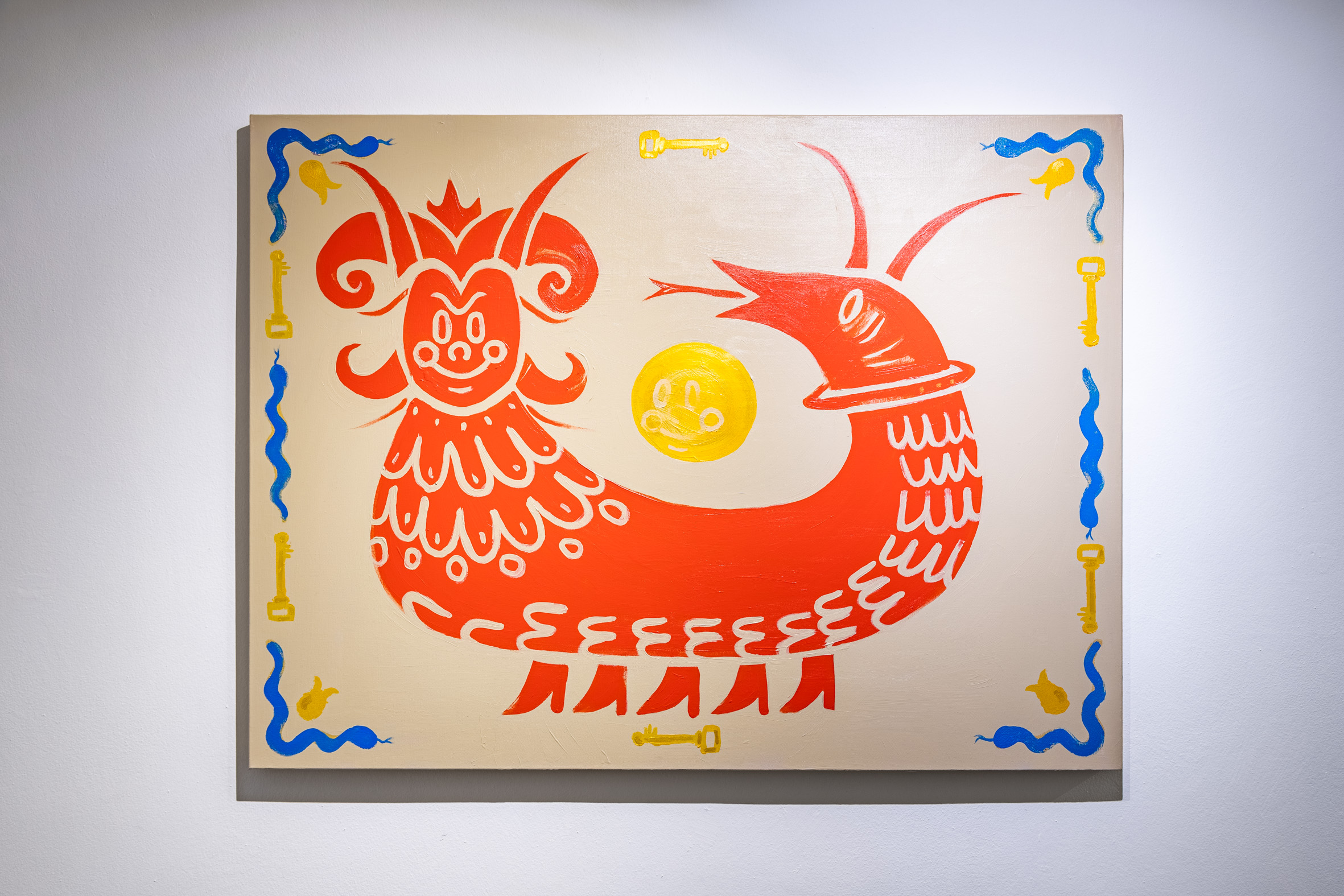 Melih Çebi creates compositions that explore the effects of the digital age and consumer society on individuals, focusing on the search for identity. Beneath the colorful and cheerful surface of his works, a deep and critical tone can be sensed. Drawing from his own life experiences and childhood memories, he constructs characters and narratives. In his works, Çebi expresses both personal and societal crises, absurd situations, and existential inquiries with a humorous and sarcastic approach.