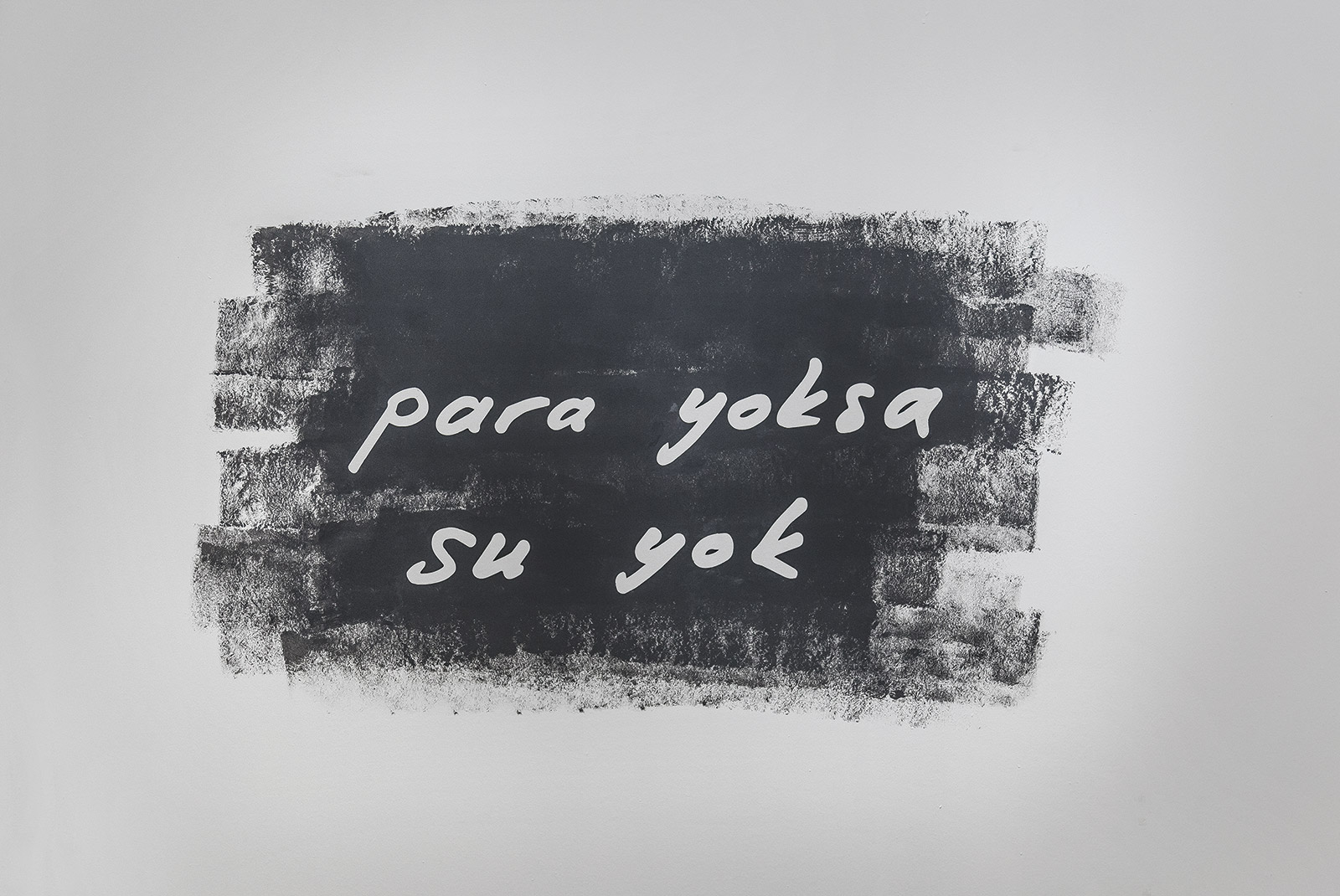 ‘Nature’ and ‘the economy’, which are issues the artist has been preoccupied with for a long time, had constituted the foundation of her solo exhibition at Maçka Art Gallery in 2012. The issue of “poverty” that she tackles through the individual is opened up to discussion via the questioning of a more global system of values in this exhibition with a focus on money as an instrument of change and the act of monetary valuation itself. Particularly the commodification of nature and the normalization of this commercializing, and works on humans’ perception and consumption of nature (and even natural beauties) are among the issues explored in the exhibition.