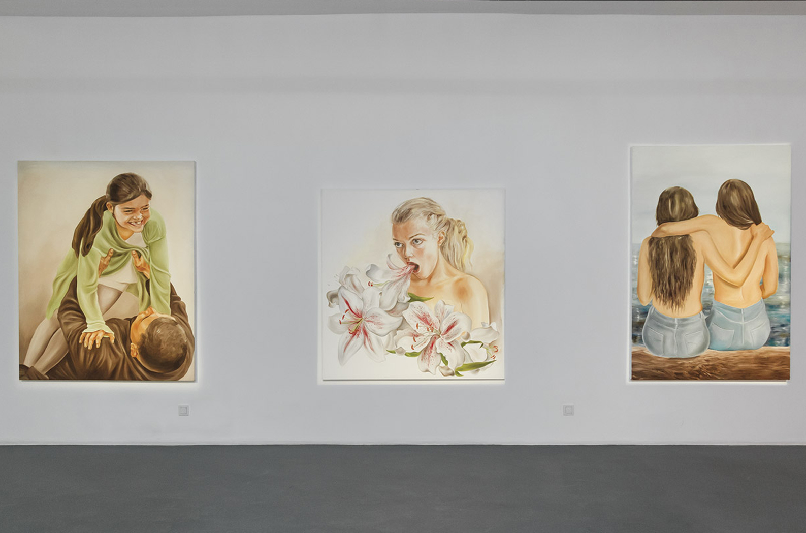 Senem Denli'nin film sahnelerinden seçilip dondurulmuş anlar gibi görünen tabloları, Çağdaş Yunan sinemasından, Avrupa sinemasına, ve oradan Amerikan bağımsız filmlerine uzanan çok sayıda filme olan hayranlığının izlerini taşıyor. Defalarca izlediği filmler kadar, çocukluktan bugüne taşıdığı bir alışkanlıkla baktığı her tür dergi/fotoğraf/aile albümü sanatçının görsel dilinin alfabesini oluşturmasında yardımcı oluyor. Lary Clark’ın ergen çocukları, Spring Breakers filminin kızlarına, Miss Violence’ın ilk sahnesinde doğum gününde intihar eden pembe giysili kızına bağlanıyor. Sanatçının duygu dünyasına girildiğinde, babasıyla piknik yapan küçük kızın yüzündeki gülüş de, iki ergen kızın birbirlerine sarılıp denize baktıkları resim de, masumiyetlerini yitiriyor. Görünenin ötesinde bir şeyler olduğuna dair şüphe, izleyiciyi kemirmeye başlıyor.
