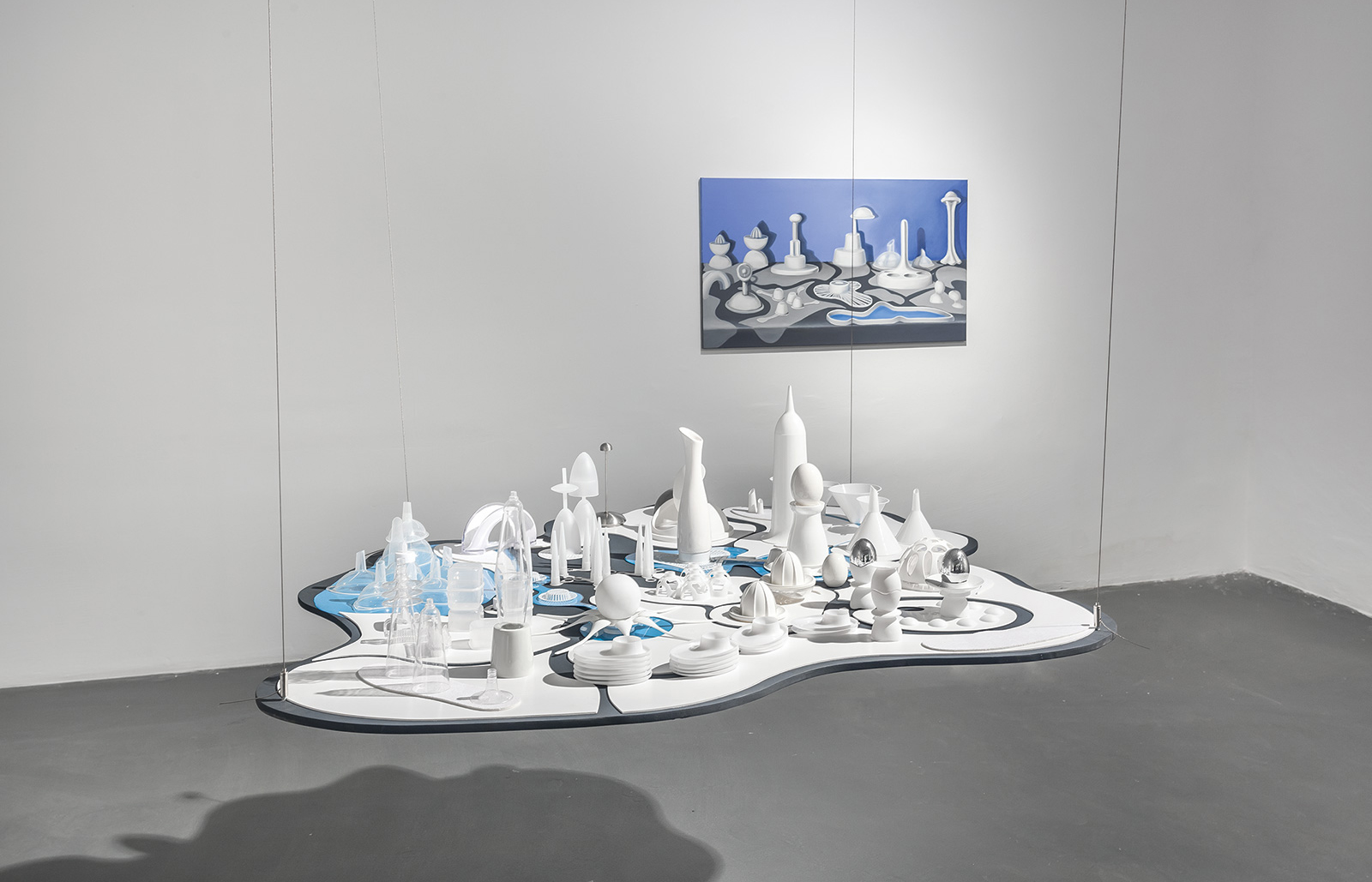 Kentler ve rüyalarla kurduğumuz ilişkiyi birbirine benzeten Italo Calvino’ya göre “en beklenmedik rüyalar bile bir bilmecedir. Kentleri de rüyalar gibi arzular veya korkular kurar”. İlk defa bu ikili sergide bir araya gelen Aktaş ve Topçu da, kent-içi durumları aktarırken korku ve arzulardan besleniyorlar. Sahici kent deneyimlerinden söz edip farklı medyumlarla kurmaca mekanlar yaratıyorlar.