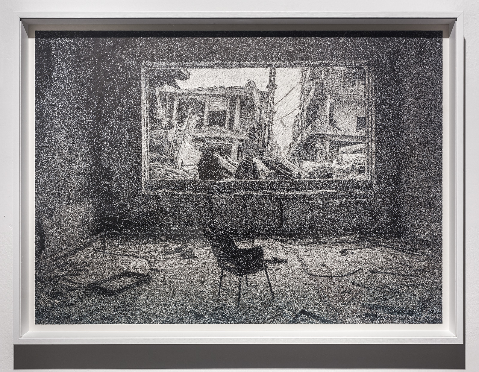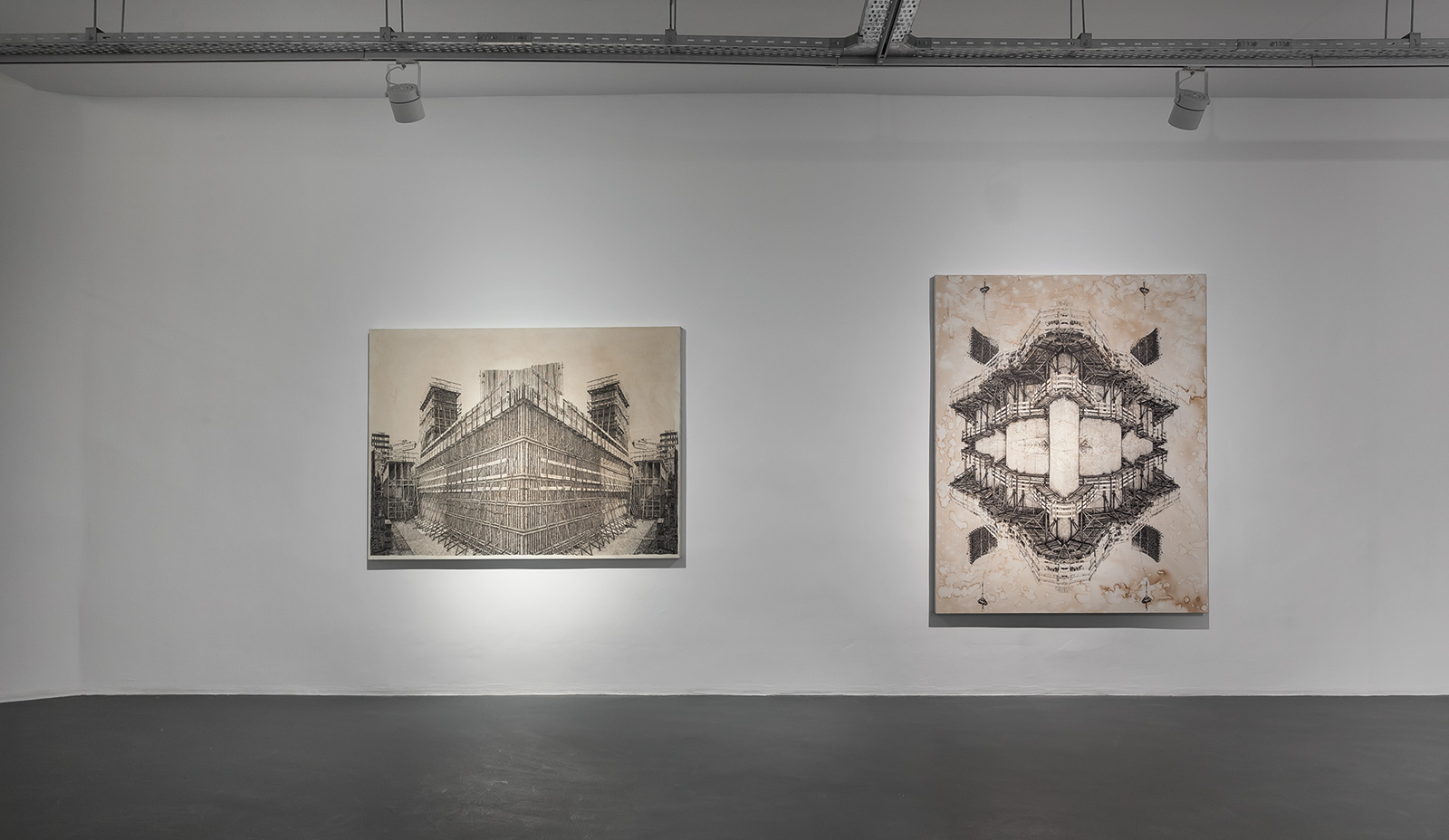 Deniz Aktaş bu sergi için tamamladığı çizim ve resimlerinde, kentin hafızasında yer eden travmaları insan ve mekan ilişkisi üzerinden irdeliyor. Sanatçının büyük bir titizlikle betimlediği sahneler çetrefilli, derinlikli ve dağınık bir kentin binalarına kentsel dönüşümün, zorla tahliyenin, yıkım ekiplerinin ve hatta çatışmaların bıraktığı izleri taşıyor. Aktaş’ın içinde yaşayanları yutan, boğan, sarmalayan ve görünmez kılan binaları izleyicide bir girdaba kapılma veya labirentte kaybolma hissi yaratıyor.