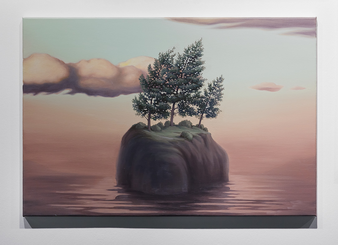 Baltalar, "Çevrili" sergisinde, bu kargaşa dönemlerinden birinde olduğumuzu işaret ediyor ve karadan kopup adacıklara dönüşmüş toprak parçaları üstündeki ağaç ve çalılıkları hayal ettiği bir dizi resim sunuyor. Galerideki sergi sadece ve sadece, hatta ısrarla bu görüntüye odaklanıyor. Bu adaların nasıl oluştuğu veya ağaçların nasıl fırtınaları atlattığı bilinmiyor. Görünürde insan ve hayvan izinin olmadığı bu minyatür adalar bonsai'leri* veya gezegenleri andırıyor. Dar bir alana sıkışmışlık hissi ile uçsuz bucaksız sularla çevrili olmanın kaygısını paylaşan bu resimler, ilk bakışta ürkek bir ruh halinin izlerini taşıyor gibi görünüyor. Oysa her biri, bir kararlılık ve direniş hikayesi de anlatıyor. Bu adalar, tıpkı Küçük Prens’in titizlikle koruyup baktığı gülü gibi, dış dünya karşısında, ne pahasına olursa olsun ayakta durabilme çabasının sembollerine dönüşüyor.
