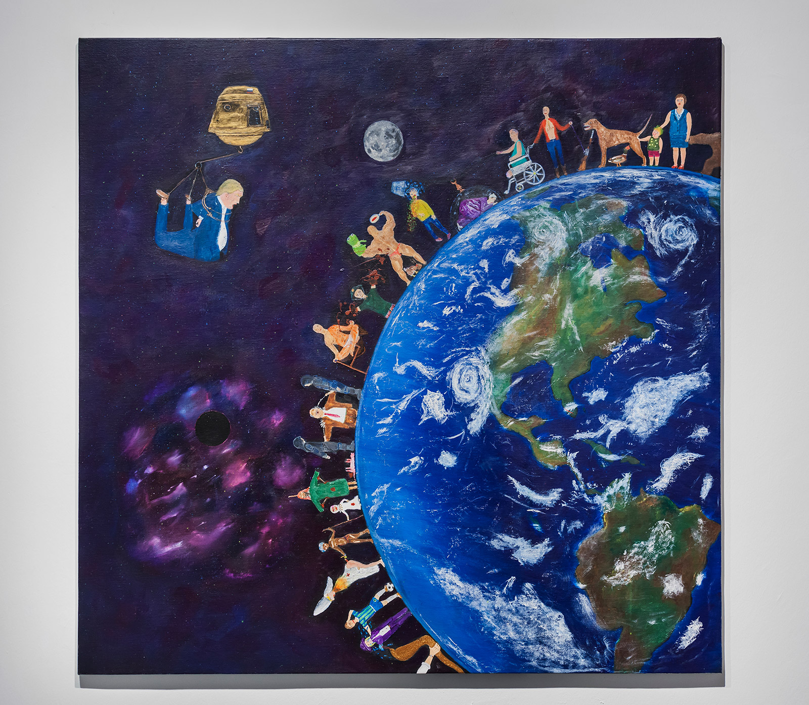 Ural türler, zamanlar, hisler arasında bir hayali müze kuruyor. Müzesindeki eserler birbirlerine benzemiyor belki, ancak bizimle ve birbirleriyle konuşuyorlar. Kimi zaman kadraja tanımlanamayan bir nesne giriyor, kimi zaman cinsiyetler, durumlar ve mekanlar arasında salınıyor kamera. Ural kolonyalizmden de bahsediyor, popüler kültürün yeni dilinin kelimelerini de hizaya diziyor. Bu görsel anlatılar, resmin kurallarına uymakla ilgilenmiyor; kimi zaman yüzeyde, kimi zaman perspektiften yoksun başka bir gerçeklikte var oluyorlar. Ural, geçmişle bugün arasında etkileşen bir okuma öneriyor. Hayaletler, internetin kara delikleri, kedi videolarından Donald Trump’a uzanan bu komik, neredeyse çizgi film gerçekliğindeki resimler, Ural’ın kolay tanımlanamayan dünyası içinde yan yana duruyor. Kaos, tüm bu yerleştirmelerde son derece akılcı görünüyor.